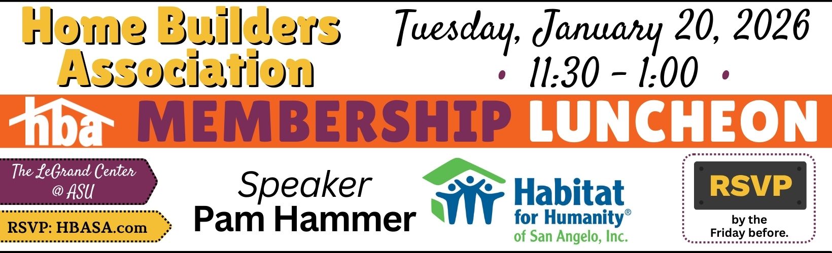 The Home Builders Association of San Angelo is a non-profit professional trade organization made up of the absolute best in the home building industry in the Concho Valley. We are comprised of builders and associate members who subscribe to the highest business and ethical practices and who are committed to fostering an environment conducive to help the growth of businesses within the construction trades industry. We are nearly 300 members strong working to build a better San Angelo one home at a time.